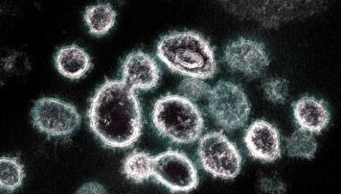 图:在显微镜(TEM)下的病毒(SARS-CoV-2)。